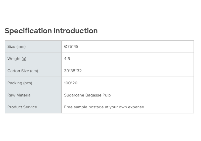 Material: Sugarcane Bagasse Pulp