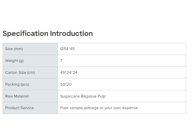 Material: Sugarcane Bagasse Pulp
